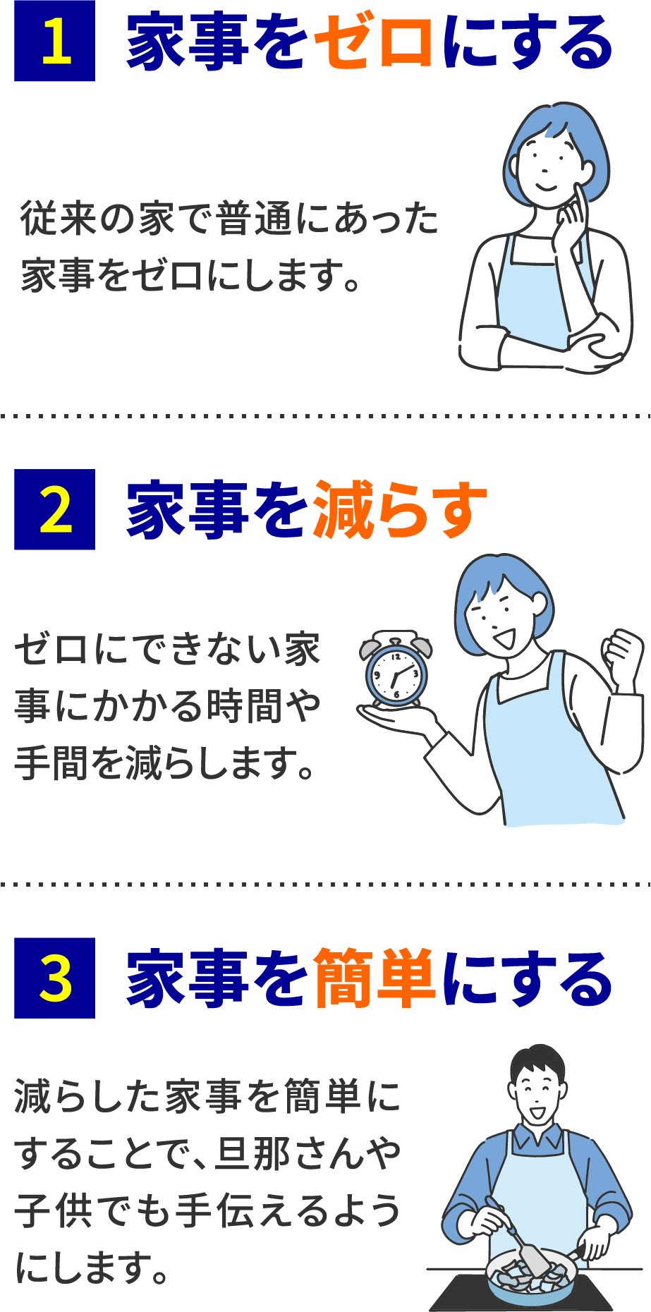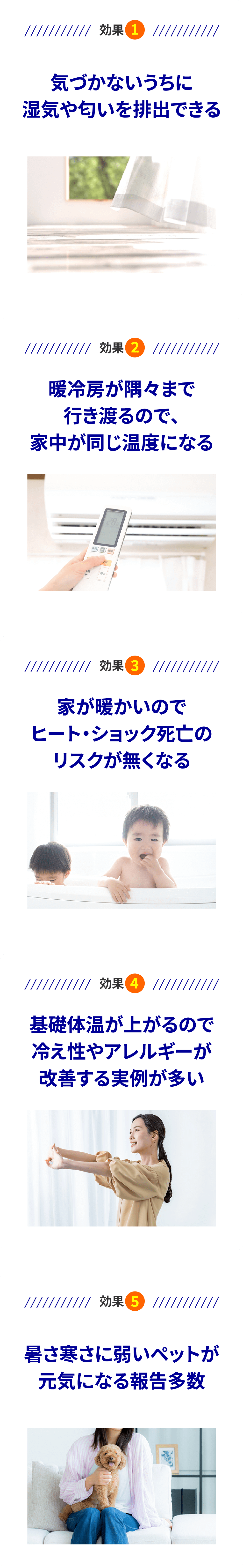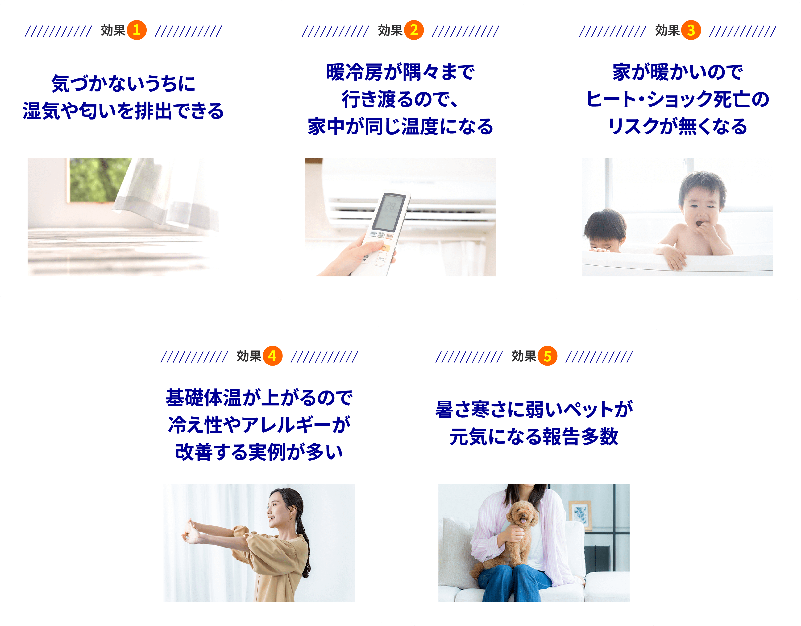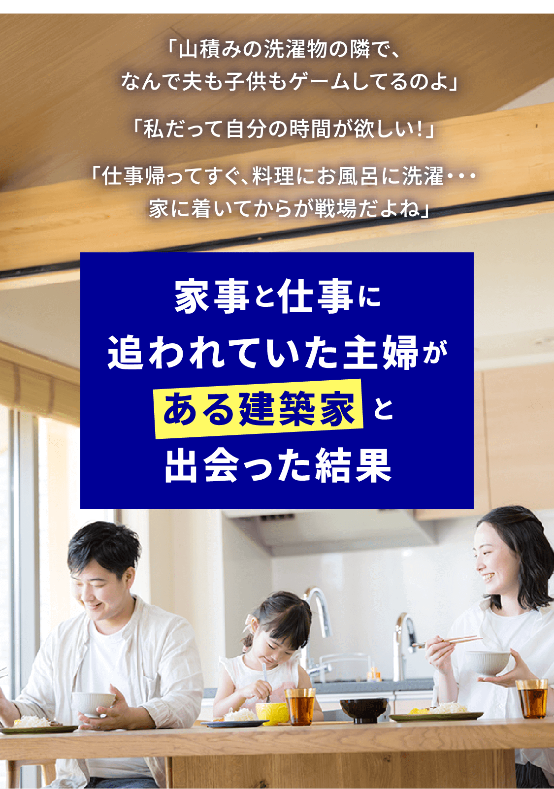 これにより、暖冷房熱を隅々まで行き渡らせたり、生ごみやペットの匂い、化学物質を速やかに排出することができるので、これまで誰も無くすことが出来なかった、家事と家事のストレスを激減することができるのです。