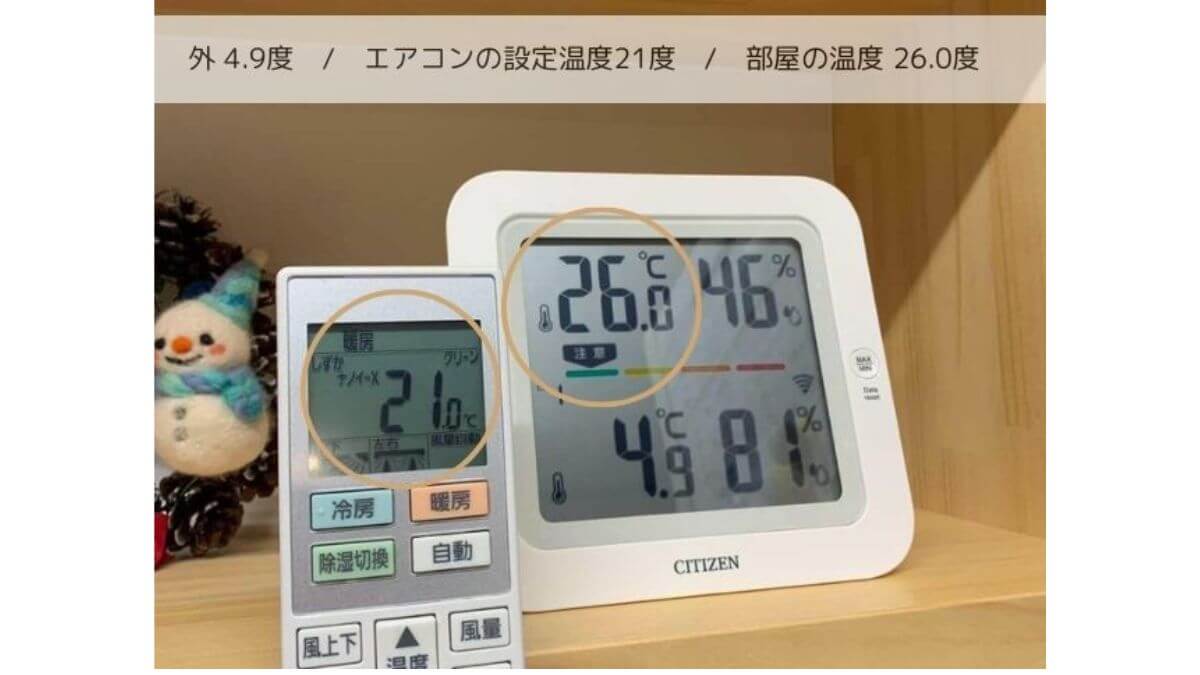 エアコン設定温度21℃なのに室内温度26℃に♩